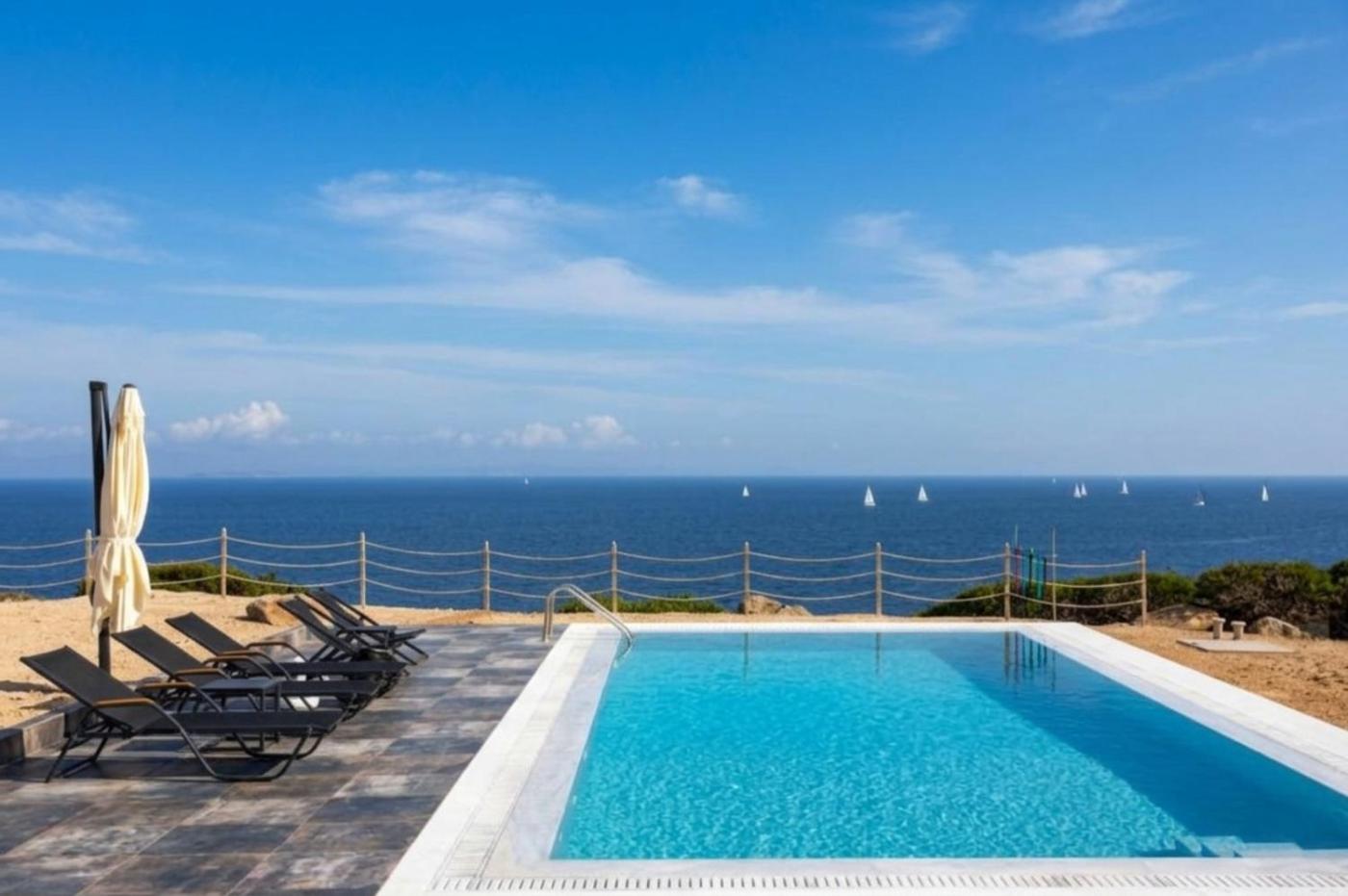 Villa with Sea View. This villas standout features are the private pool and fireplace. This spacious villa includes 2 living rooms, 5 separate bedrooms and 4 bathrooms with a bath or a shower and free toiletries. In the well-equipped kitchen, guests will find a stovetop, a refrigerator, an oven and a toaster. The air-conditioned villa offers a flat-screen TV, a washing machine, a private entrance, a tea and coffee maker as well as sea views. The unit has 9 beds.