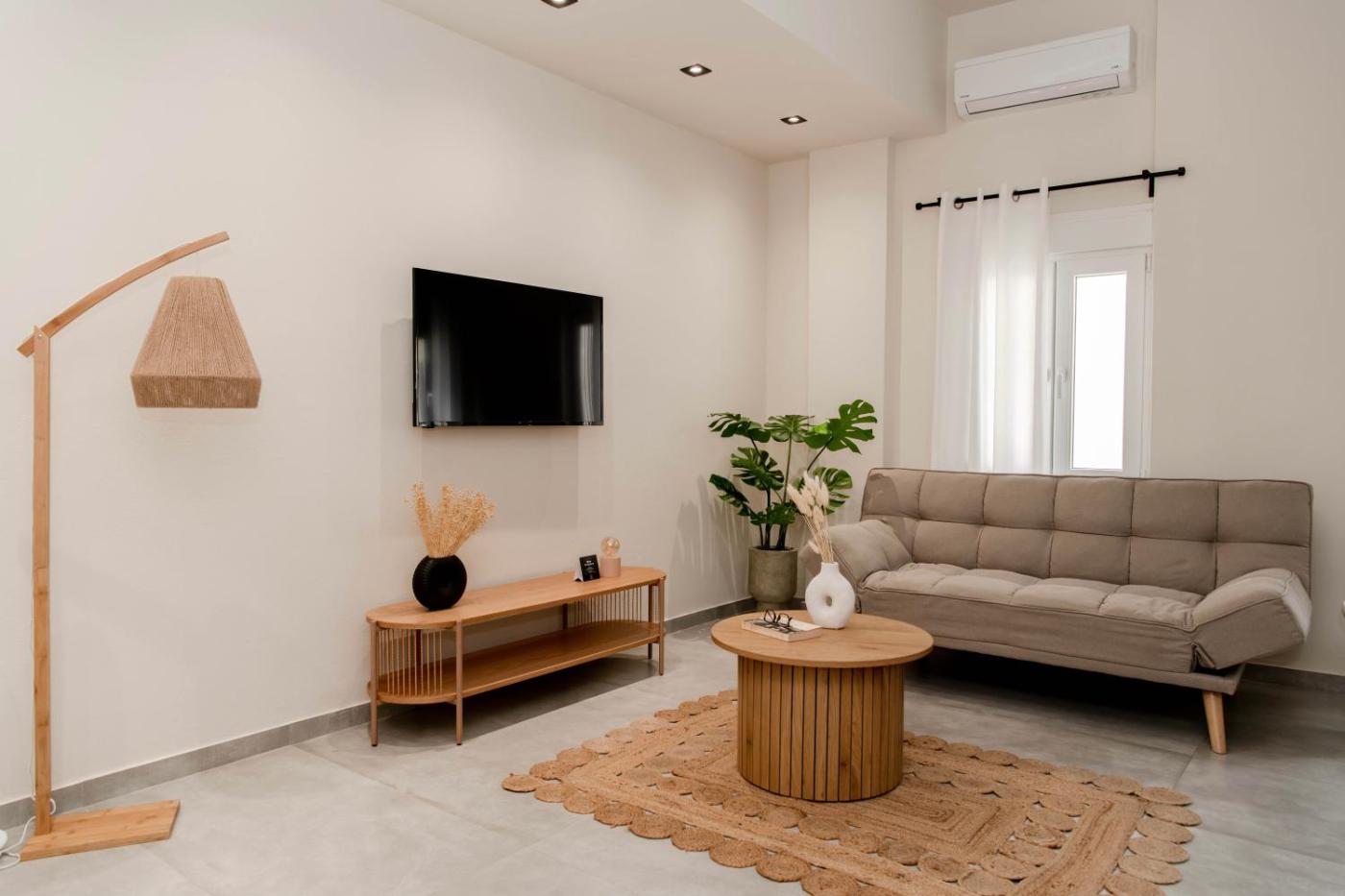 One-Bedroom Apartment. This apartment is comprised of 1 living room, 1 separate bedroom and 1 bathroom with a shower and free toiletries. Meals can be prepared in the kitchen, which comes with a stovetop, a refrigerator, kitchenware and an oven. The apartment features tiled floors, a seating area with a flat-screen TV with streaming services, air conditioning, a washing machine, as well as a tea and coffee maker. The unit offers 2 beds.