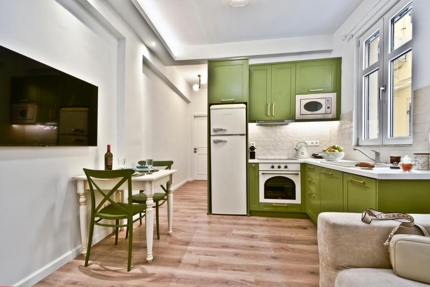 One-Bedroom Apartment with Garden. Featuring a private entrance, this air-conditioned apartment is comprised of 1 living room, 1 separate bedroom and 1 bathroom with a walk-in shower and a hairdryer. The well-equipped kitchen features a stovetop, a refrigerator, kitchenware and an oven. Boasting a terrace with garden views, this apartment also offers a washing machine and a flat-screen TV. The unit offers 1 bed.