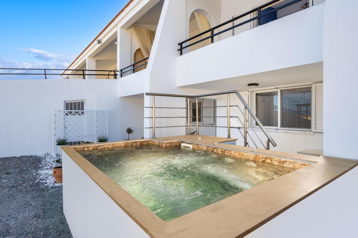 Three-Bedroom Villa. The hot tub is a top feature of this villa. This air-conditioned villa comes with 1 living room, 3 separate bedrooms and 2 bathrooms with a shower. In the fully equipped kitchen, guests will find a stovetop, a dishwasher, kitchenware and an oven. Among the room amenities are a washing machine, soundproof walls, a tea and coffee maker as well as a patio and sea views. The unit has 4 beds.