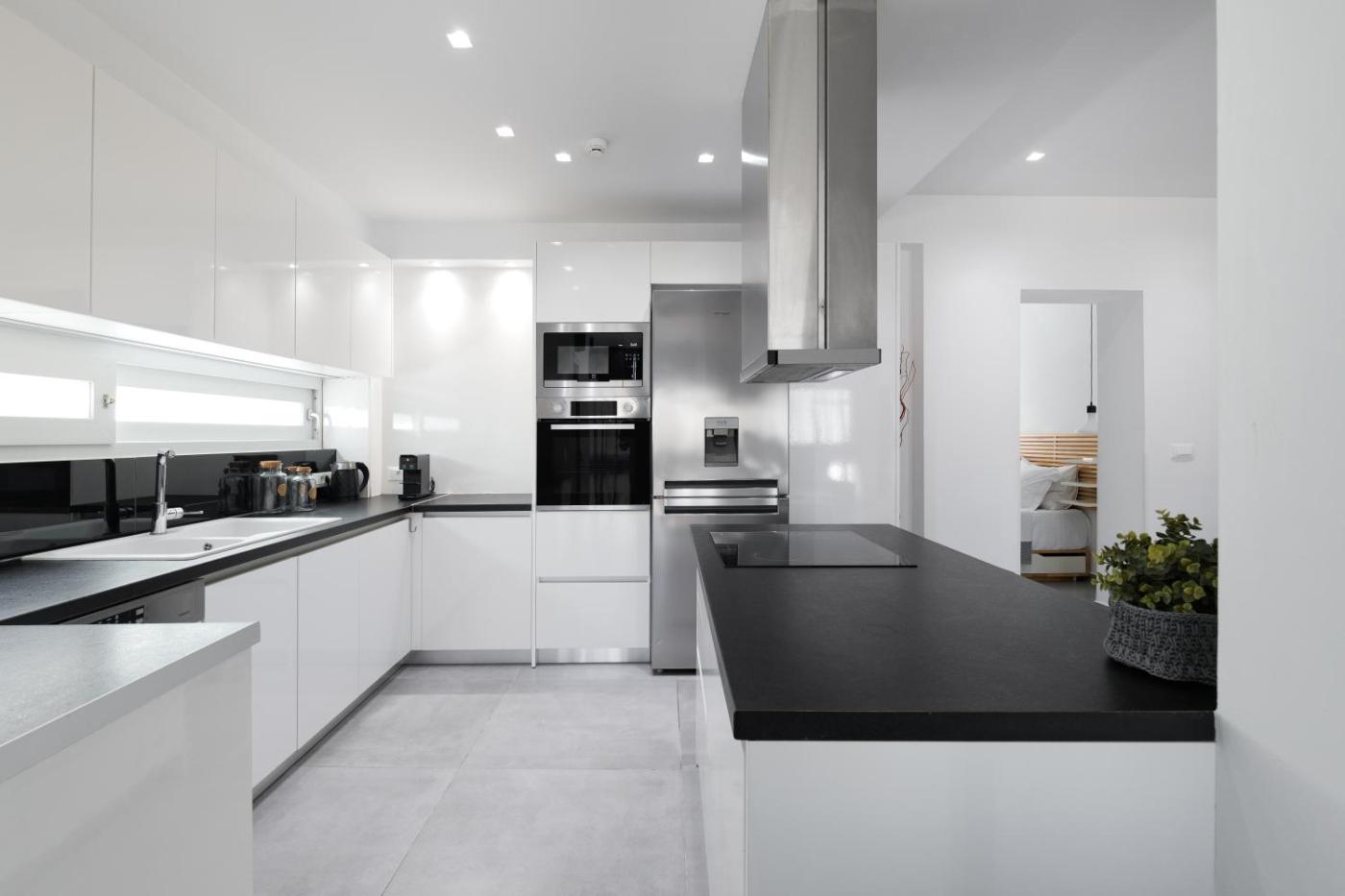 Two-Bedroom Apartment. This spacious apartment comprises 1 living room, 2 separate bedrooms and 2 bathrooms with a walk-in shower and a hairdryer. Guests can make meals in the kitchen that comes with a stovetop, a refrigerator, a dishwasher and kitchenware. This apartment is air-conditioned and features a seating area with a flat-screen TV, a washing machine, soundproof walls, a tea and coffee maker, as well as a dining area. The unit offers 4 beds.