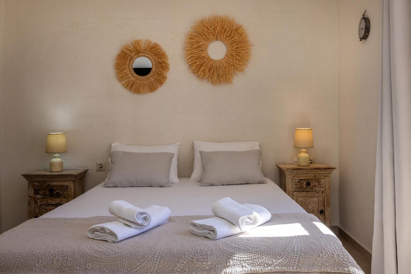 Two-Bedroom House. Featuring a private entrance, this air-conditioned holiday home comprises 2 bedrooms and 1 bathroom with a hairdryer. The holiday homes kitchen, which features a refrigerator and kitchenware, is available for cooking and storing food. Boasting a terrace with garden views, this holiday home also provides a tea and coffee maker and a flat-screen TV. The unit offers 2 beds.