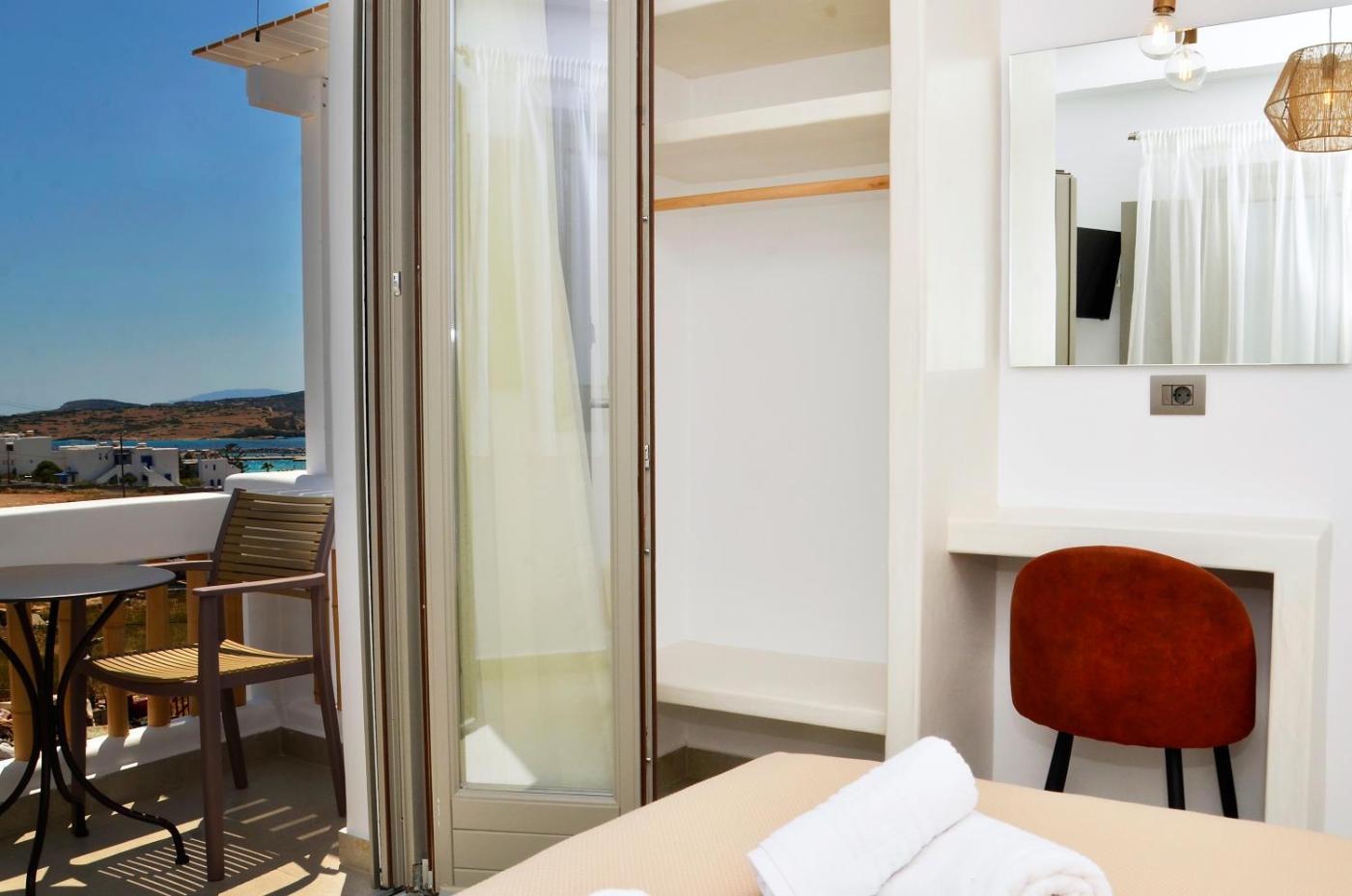 Deluxe Queen Studio. In the kitchenette, guests will find a stovetop, a refrigerator, kitchenware and a tea and coffee maker. The studio provides air conditioning, a private entrance, a terrace with sea views as well as a private bathroom featuring a shower. The unit offers 1 bed. ;