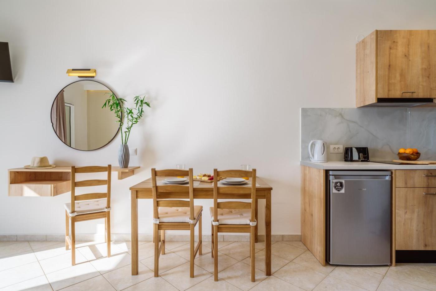 Studio Apartment. The air-conditioned apartment has 1 bedroom and 1 bathroom with a shower and a hairdryer. Meals can be prepared in the well-fitted kitchenette, which is fitted with a stovetop, a refrigerator, kitchenware and a toaster. Boasting a terrace with sea views, this apartment also offers a tea and coffee maker and a flat-screen TV. The unit has 2 beds. ;