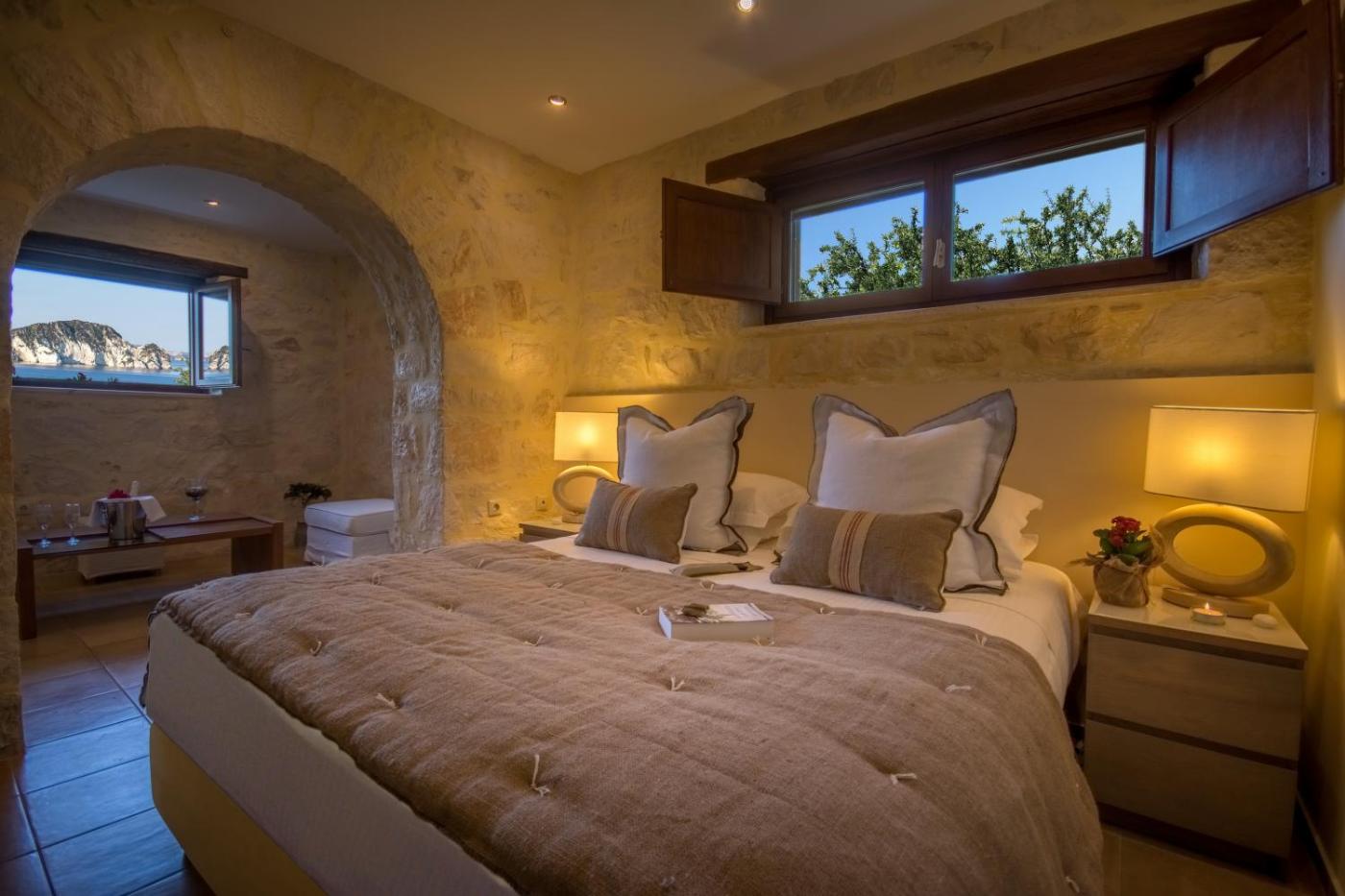 Deluxe Suite with Private Pool (2 adults + 2 children). Very spacious suite with large private pool, large bedroom with an extra toilet on the first floor, living room with 2 extra sofa beds, fully equipped kitchen and bathroom. It enjoys panoramic views of the Ionian Sea. Please note that 2 children can be accommodated in the sofa bed.