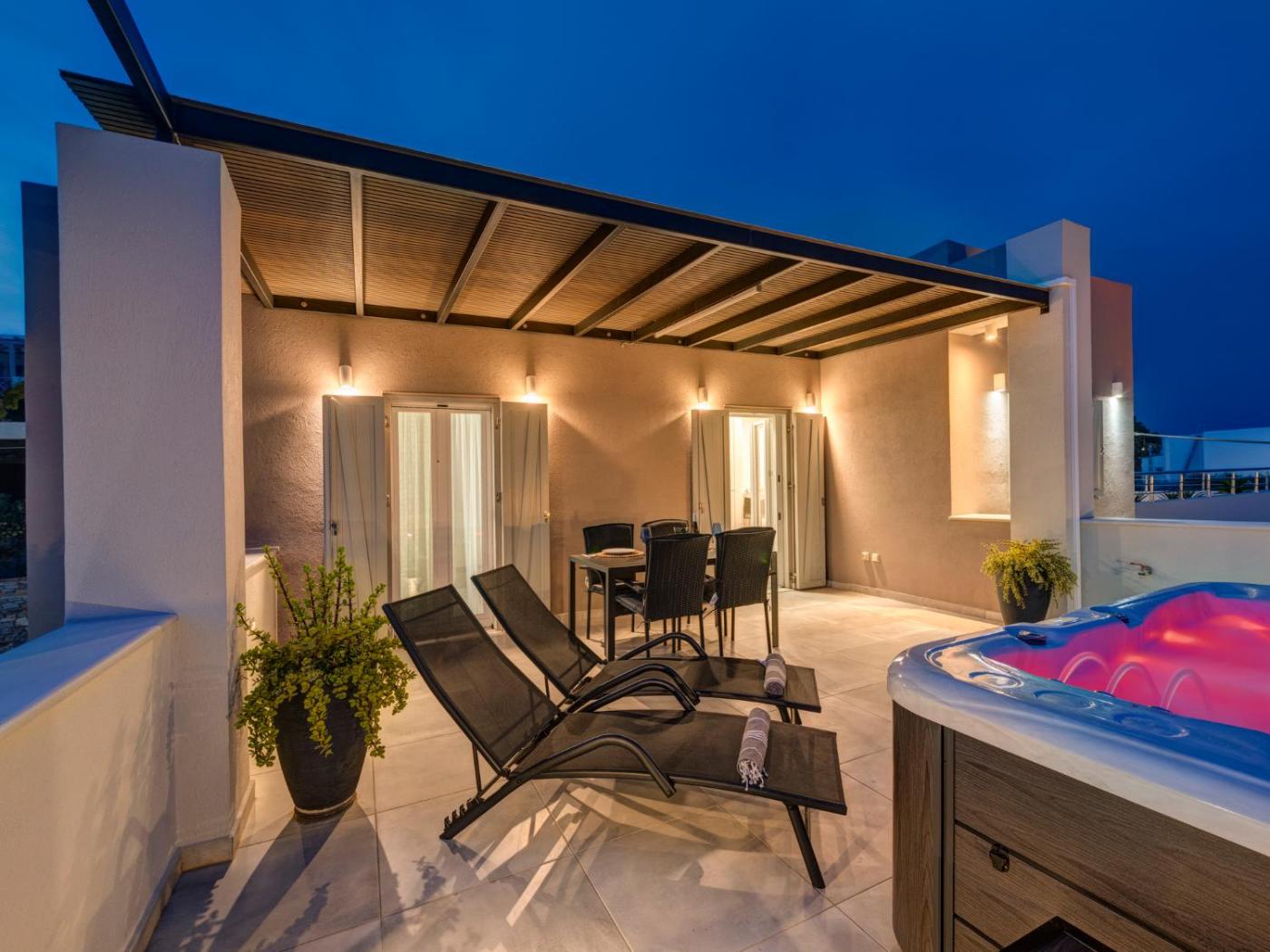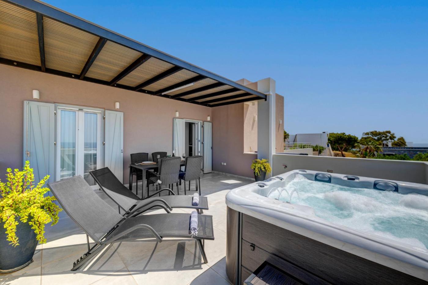 One-Bedroom Apartment. Guests will have a special experience as the apartment offers a hot tub. Featuring a private entrance, this air-conditioned apartment consists of a kitchen, 1 bedroom and 1 bathroom with a shower and a hairdryer. The fully equipped kitchen features a stovetop, a refrigerator, kitchenware and an oven. Boasting a terrace with sea views, this apartment also provides a washing machine and a flat-screen TV with satellite channels. The unit offers 1 bed.