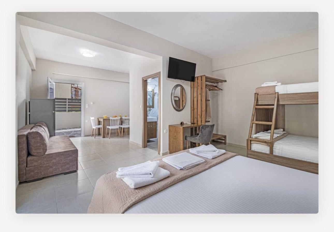 King Studio. The studio offers air conditioning, a wardrobe, as well as a private bathroom featuring a walk-in shower and a hairdryer. In the kitchenette, guests will find a stovetop, a refrigerator and kitchenware. Boasting a terrace, this studio also provides a tiled floor and a flat-screen TV. The unit offers 1 bed. ;