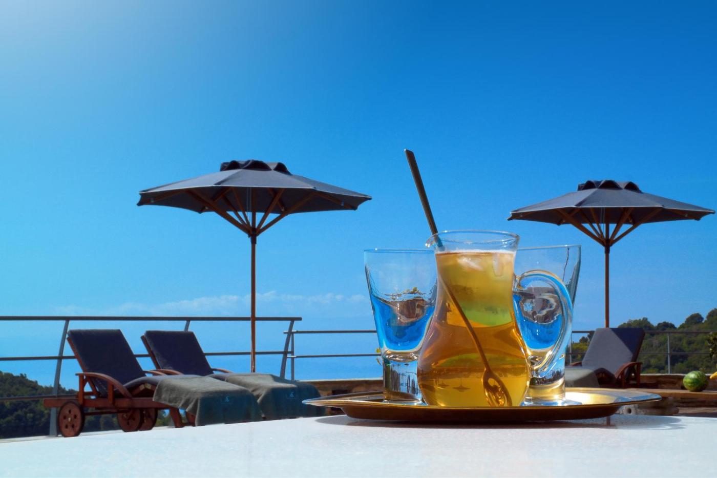 Blending wood with stone, the snack bar of Sakali Mansion serves drinks, local spoon sweets and light meals by the fireplace. A traditional breakfast with homemade pies, jams and bread is served at the pool area.