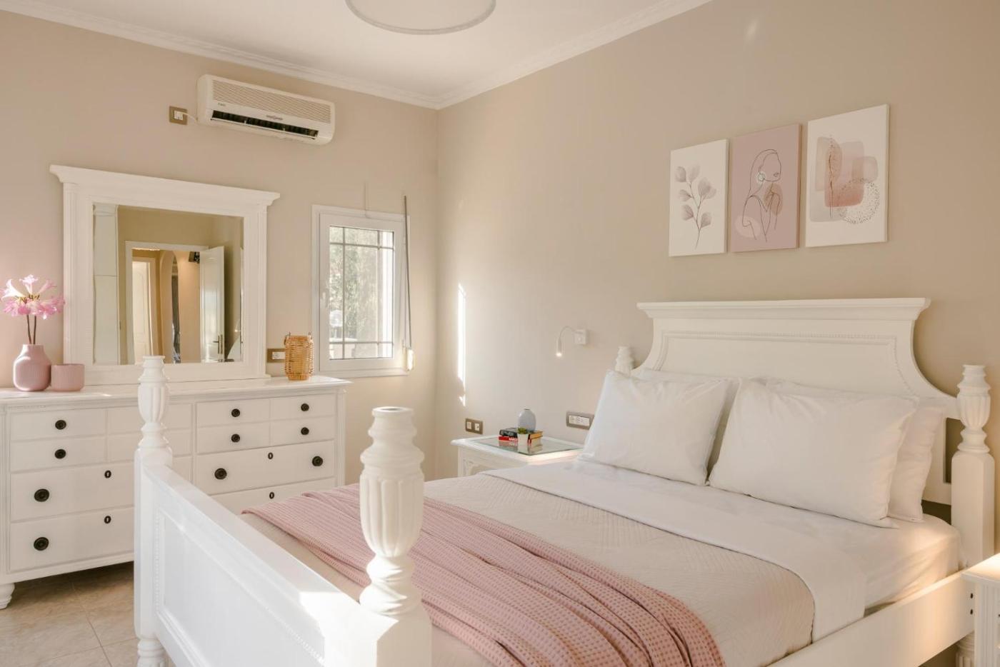 Three-Bedroom Villa. The private pool is a top feature of this villa. Boasting a private entrance, this air-conditioned villa comes with a kitchen, 3 bedrooms and 2 bathrooms with a shower and a hairdryer. Guests will find a refrigerator, a dishwasher, a microwave and a toaster in the fully equipped kitchen. The villa also includes a barbecue. The villa features a TV, a washing machine, a tea and coffee maker, a safe deposit box as well as sea views. The unit has 4 beds.