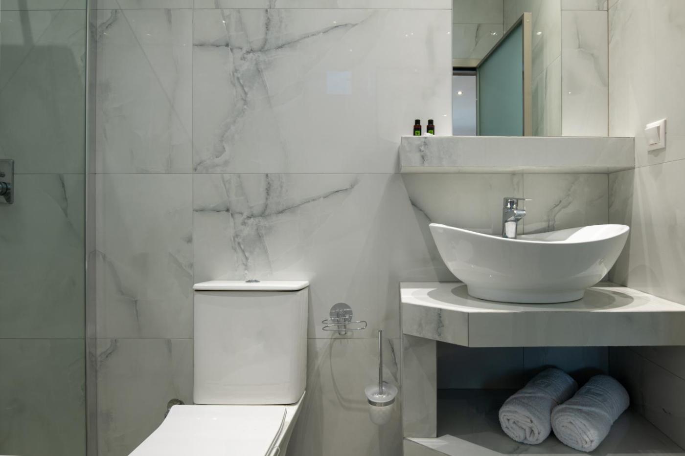 One-Bedroom Apartment. The air-conditioned apartment features 1 bedroom and 1 bathroom with a walk-in shower and a hairdryer. Featuring a balcony with ancourtyard view, this apartment also offers soundproof walls and a flat-screen TV with cable channels. The unit offers 1 bed. ;