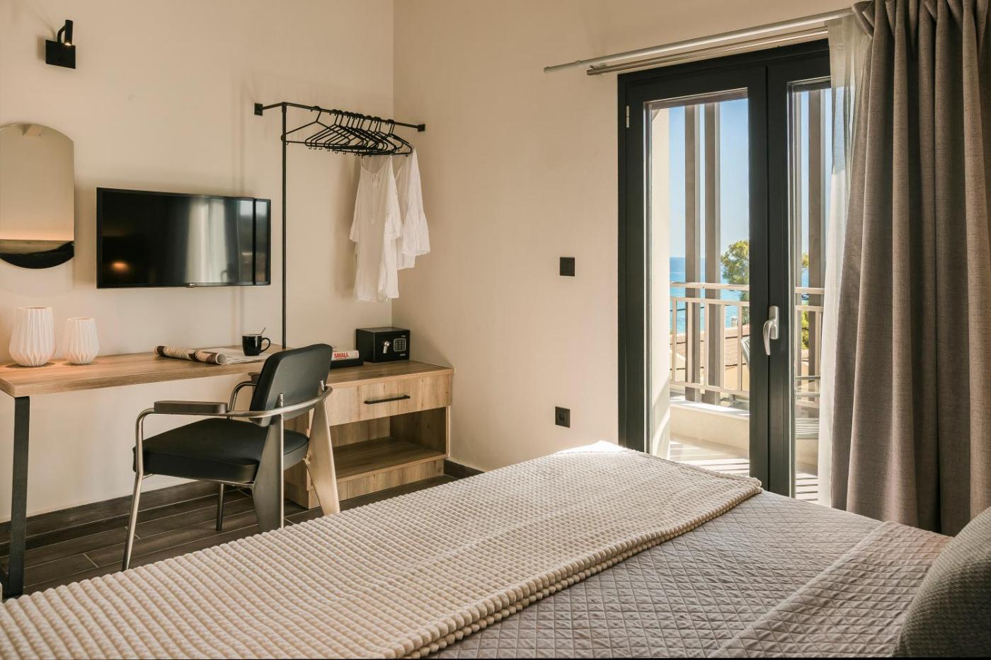 Deluxe Double Room with Side Sea View. The double room offers air conditioning, a tea and coffee maker, a balcony with sea views as well as a private bathroom boasting a shower. The unit has 1 bed.
